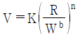 발파시 지반의 진동속도 V(cm/s)를 구하는 관계식으로 옳은 것은? (단, K, n : 지질암반조건, 발파조건 등에 따르는 상수, W : 지발당 장약량(kg), R : 발파원으로부터의 거리(m), b : 1/2 또는 1/3 이다.)