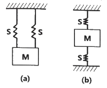 아래 그림에서 (a), (b) 진동계의 고유진동수를 구하는 계산식으로 옳은 것은? (단, S는 스프링 정수, M은 질량이다.)