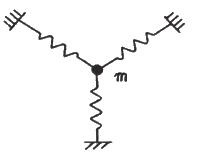 아래 그림에서 질량 m은 평면 내에서 움직인다. 이 계의 자유도는?