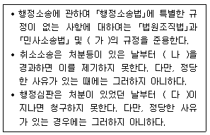 다음은 「행정소송법」과 「행정심판법」의 내용이다. ( )안에 들어갈 내용으로 옳은 것은? (순서대로 (가), (나), (다))