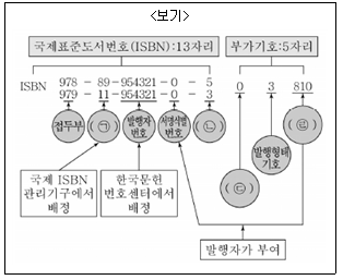 <보기>는 국제표준도서번호(ISBN)의 구조를 설명한 것이다. ㉠~㉣을 순서대로 채운 것 중 가장 옳은 것은? (순서대로 ㉠, ㉡, ㉢, ㉣)
