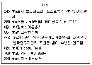 <보기>는 KORMARC 통합서지용(개정판) 형식으로 작성한 레코드의 일부이다. ㉠~㉣에 들어갈 내용을 순서대로 바르게 나열한 것은? (단, 지시기호와 띄어 쓰기는 제외한다.) (순서대로 ㉠, ㉡, ㉢, ㉣)