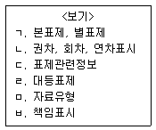 <보기>는 한국목록규칙 제4판(KCR4)의 기술총칙에서 제시된 표제와 책임표시사항의 기술요목들이다. 순서 대로 바르게 나열한 것은?