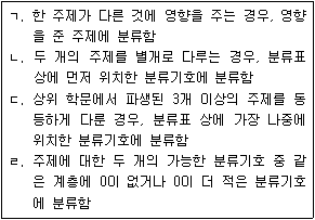 듀이십진분류법에서 복수의 주제를 다룬 문헌에 적용하는 분류규정이다. 옳은 것을 <보기>에서 모두 고른 것은?