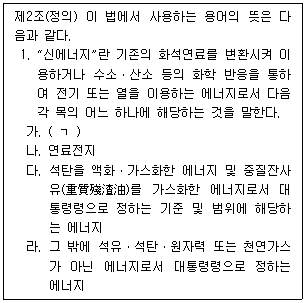 신에너지 및 재생에너지 개발ㆍ이용ㆍ보급 촉진법상 ( )에 들어갈 용어를 쓰시오.