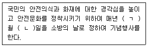 소방기본법 제7조(소방의 날 제정과 운영 등) 제1항 규정이다. ( )에 들어갈 아라비아 숫자를 쓰시오.
