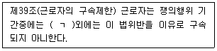 노동조합 및 노동관계조정법상 근로자의 구속제한에 관한 내용이다. ( )에 들어갈 용어를 쓰시오.