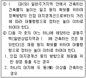 「건축법」제61조(일조 등의 확보를 위한 건축물의 높이 제한) 규정의 일부이다. ( )에 들어갈 용어를 순서대로 쓰시오.