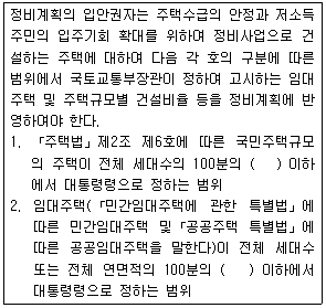 「도시 및 주거환경정비법」제10조(임대주택 및 주택규모별 건설비율) 제1항 규정의 내용이다. ( )에 들어갈 숫자를 순서대로 쓰시오.
