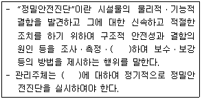 「시설물의 안전 및 유지관리에 관한 특별법」제2조(정의) 및 제12조(정밀안전진단의 실시) 규정의 일부이다. ( )에 들어갈 단어를 순서대로 쓰시오.