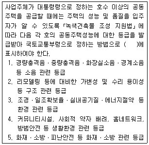 주택법 제39조(공동주택성능등급의 표시)의 규정이다. ( )에 들어갈 용어를 쓰시오.