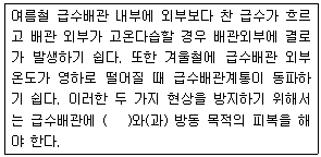 다음은 급수배관 피복에 관한 내용이다. ( )에 들어갈 용어를 쓰시오.