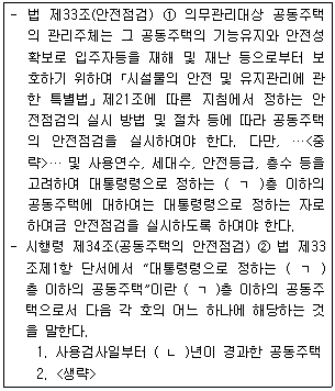 공동주택관리법령상 공동주택의 안전점검에 관한 규정의 일부이다. ( ㄱ )에 공통적으로 들어갈 숫자와 ( ㄴ )에 들어갈 숫자를 순서대로 쓰시오.