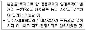 공동주택관리법령상 다음의 요건을 모두 갖춘 혼합주택단지에서 입주자대표회의와 임대사업자가 공동으로 결정하지 않고 각자 결정할 수 있는 사항은?