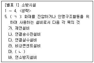 화재예방, 소방시설 설치ㆍ유지 및 안전관리에 관한 법률 시행령상 건물의 소방시설에 관한 내용이다. ( )에 들어갈 용어를 쓰시오.