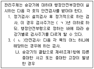 승강기 안전관리법 제32조(승강기의 안전검사) 제1항 규정의 일부이다. ( )에 들어갈 용어와 아라비아 숫자를 쓰시오.