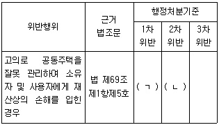공동주택관리법령상 주택관리사등에 대한 행정처분기준 중 개별기준의 일부이다. ( )에 들어갈 내용을 옳게 나열한 것은?