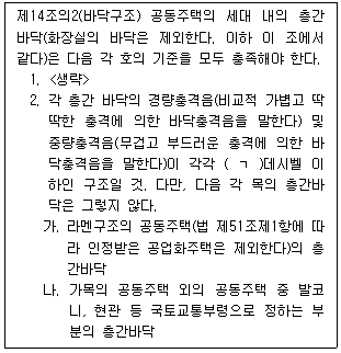 주택건설기준 등에 관한 규정상 공동주택 세대 내의 층간바닥 구조에 관한 내용이다. ( )에 들어갈 아라비아 숫자를 쓰시오.