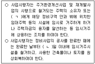 도시 및 주거환경정비법 제61조(임시거주시설ㆍ임시상가의 설치 등) 규정의 일부이다. ( )에 들어갈 용어와 아라비아 숫자를 쓰시오.