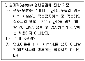 먹는물 수질 및 검사 등에 관한 규칙상 수돗물 수질기준에 관한 내용이다. ( )에 들어갈 아라비아 숫자를 쓰시오.