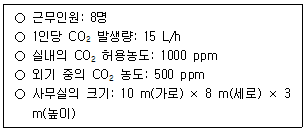 다음의 조건에서 관리사무소의 환기횟수(회/h)는? (단, 주어진 조건 외는 고려하지 않음)