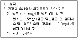 먹는물 수질기준 및 검사 등에 관한 규칙상 먹는물의 수질기준에 관한 내용이다. ( )에 들어갈 아라비아 숫자를 쓰시오.