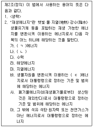 신에너지 및 재생에너지 개발·이용·보급 촉진법상 용어의 정의에 관한 내용이다. ( )에 들어갈 용어를 쓰시오.