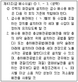 주택건설기준 등에 관한 규정상 급·배수시설에 관한 내용이다. ( )에 들어갈 용어와 아라비아 숫자를 쓰시오.