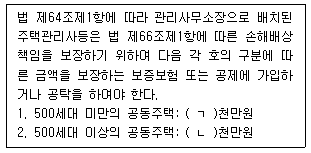 공동주택관리법 시행령 제70조(손해배상책임의 보장) 규정의 일부이다. ( )에 들어 갈 숫자를 쓰시오.