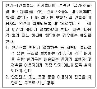 건축물의 설비기준 등에 관한 규칙상 환기구의 안전 기준에 관한 내용이다. ( )에 들어갈 숫자를 쓰시오.