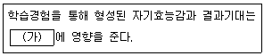 사회인지진로이론(Social Cognitive Career Theory; SCCT)에서 설명하는 개념으로 (가)에 들어갈 용어는?