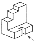 투상도 중에서 화살표 방향에서 본 투상도가 정면 도이면 평면도로 적합한 것은?