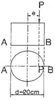 편심축하중을 받는 다음 기둥에서 B점의 응력을 구한 값은? (단, 기둥 단면의 지름 d=20cm, 편심거리 e=7.5cm, 편심하중 P=20t이다.)