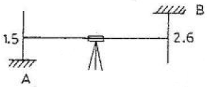 직접고저측량을 하여 그림과 같은 결과를 얻었다. 이 때 B점의 표고는? (단, A점의 표고는 100m 이고 단위는 [m]이다.)