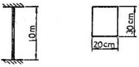 그림과 같이 양단 고정인 기둥의 좌굴응력을 오일러(Euler)의 공식에 의하여 계산한 값은? (단, 기둥단면은 그림과 같으며 E=4.0x105kg/cm2)