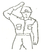 그림과 같이 주먹을 머리에 대고 떼었다 붙였다 하며 호각을 짧게, 길게 부는 신호 방법은?