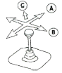 다음 그림에서 유니버셜 제어기의 Ⓐ방향이 횡행이고, Ⓑ방향이 주행이라면, Ⓒ방향에 대한 설명 중 옳은 것은?