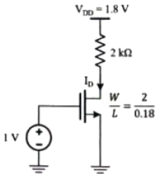 다음 회로는 MOSFET의 어느 영역에서 동작하는가? (단, μnCox = 100μA/V2, VTH = 0.4V 이다.)