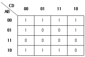 다음 카르노도(Karnaugh Map)를 논리식으로 간단히 표현하면?