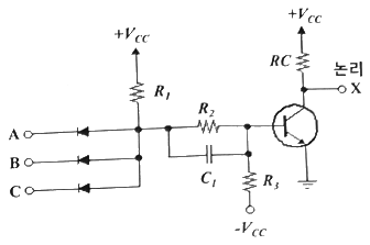 다음과 같이 다이오드와 트랜지스터로 구성된 DTL 논리회로의 게이트 기능은?