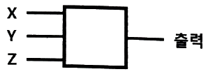 다음 그림에서 세 입력(Z, Y, Z) 중 어떠한 입력이든 두 입력 이상이 정논리일 때 출력 또한 정논리가 되는 회로 설계 시 논리식은?