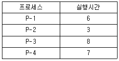 SJF(Shortest Job First) 스케줄링에서 다음과 같은 작업들이 준비상태 큐에 있을 때 평균 반환시간과 평균 대기시간은?