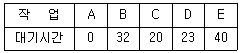 RR(Round-Robin) 알고리즘을 사용하여 A, B, C, D, E의 작업을 실행시킬 때, 대기시간은 다음과 같다. 평균 대기시간은?