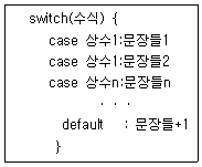 switch문에서는 문자형을 포함하여 정수형 수식만 사용할 수 있다.