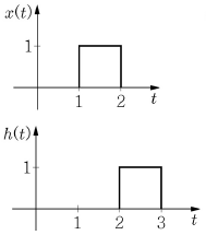 두 신호 x(t)와 h(t)가 <보기>와 같이 주어졌을 때, 컨볼루션 연산 x(t)∗h(t) 의 값이 최대가 되는 t의 값은?