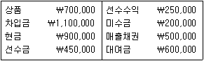 ㈜서울의 재무상태표상 각 계정별 2017년 말 잔액은 다음과 같다. 그리고 2017년 말 부채총계는 2017년 초 부채총계보다 ₩300,000만큼 더 크고, 2017년 말 자본총계는 2017년 초 자본총계보다 ₩150,000만큼 더 작다. 이를 토대로 ㈜서울의 2017년 초 자산총계를 구하면 얼마인가?