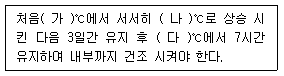 찐 천마의 열풍건조 시 건조기 내의 최적 온도와 유지 시간에 대하여 다음 ( )에 올바르게 넣은 것은?