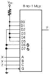 다음 회로의 출력 F에 대한 회로식으로 틀린 것은? (단, x는 MSB, z는 LSB이다.)