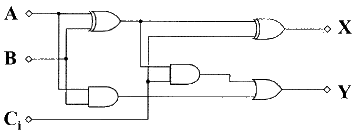 다음 회로에서 입력이 A=1, B=1, Ci=1일 때 출력 X화 Y의 값으로 옳은 것은?