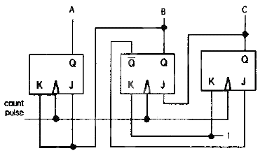 다음 COUNTER는 연속된 Count pulse에 의해 어떠한 상태 변화를 나타내는가? (단, 초기상태 ABC = 000 가정)